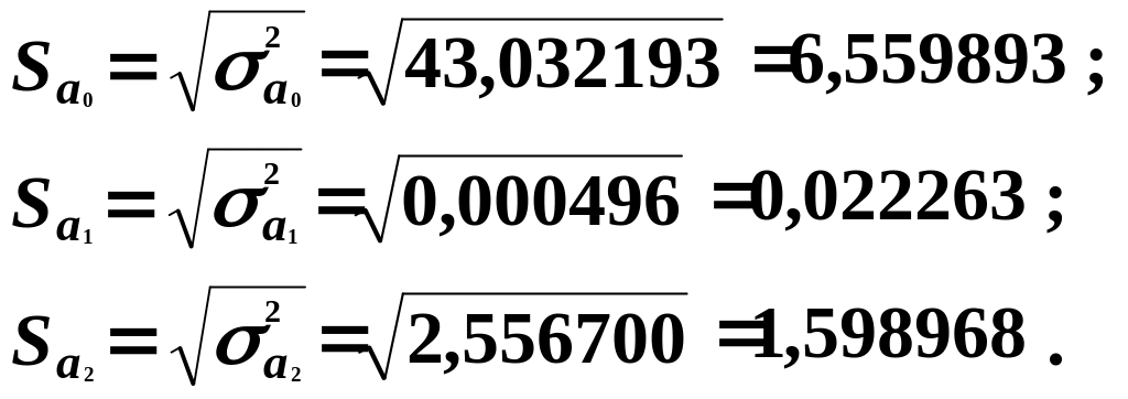 7. Знайдемо стандартні помилки оцінок параметрів: