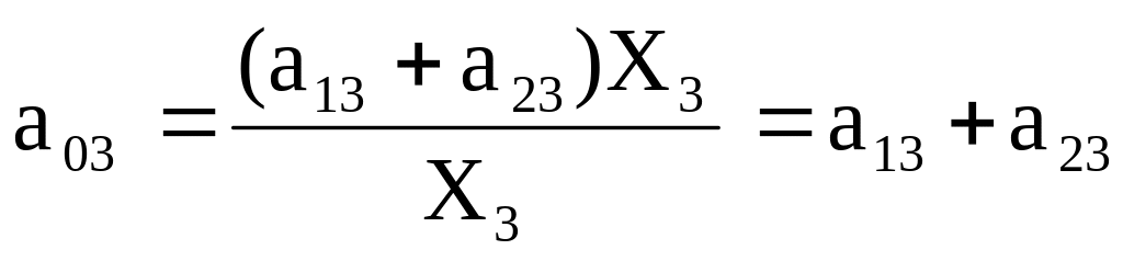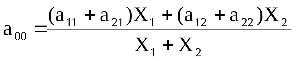 З огляду на те, що Хij=aij×Xj, одержимо такі співвідношення, що поєднують коефіцієнти витрат нового міжгалузевого балансу (після об’єднання напрямків діяльності) з коефіцієнтами витрат у міжгалузевому балансі до об’єднання напрямків: