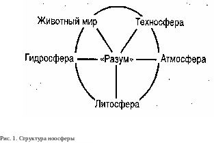 Особое место занимает В. И. Вернадский, разработавший общую схему эволюции верхней оболочки нашей планеты, основавший учение о ноосфере (рис. 1). Логика развития жизни на Земле определяет деятельность человека как главный фактор, причем биосфера может существовать без человека, но человек не может существовать без биосферы. Сохранить гармонию человека и природы - основная задача, которая стоит перед настоящим поколением. Это требует изменения многих ранее сложившихся представлений о соизмерении общественных ценностей. Необходимо развитие у каждого человека "экологического сознания", которое будет определять выбор вариантов технологий, строительства предприятий и использование природных ресурсов.