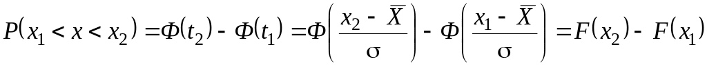 F(x2)=P(x<x2) – вероятность попадания в интервал до x2;