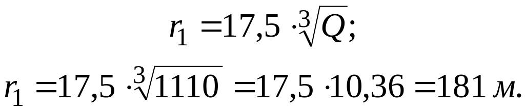 Rp2=2110–2000×0,5=1110 м; RB=1110 м.