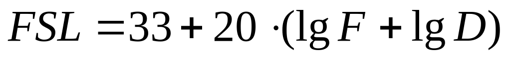 Визначаються втрати у вільному просторі (FSL – free space loss, дБ) за формулою:
