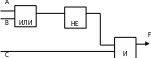 f1 – это функция выхода из элемента «ИЛИ» и функция входа в элемент «НЕ»;
