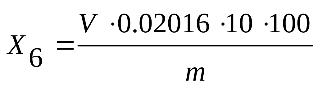 Масова доля магнію (Х6) в перерахунку на MgO, в відсотках вираховується по формулі