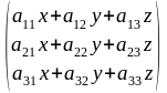 - обозначение элемента матрицы, расположенного в -й строке, и -м столбце, ( =1,2,3, =1,2,3);