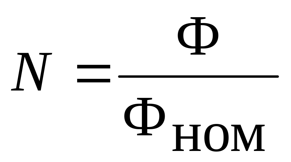 Если световой поток ламп в каждом светильнике составляет Фном, то число светильников в ряду определяется по формуле