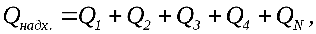 Qнадл. – надлишкове тепло, яке визначається різницею тепла, що надходить в приміщення (Qнадх.) та втратами тепла з приміщення (Qвідх.), ккал./год.