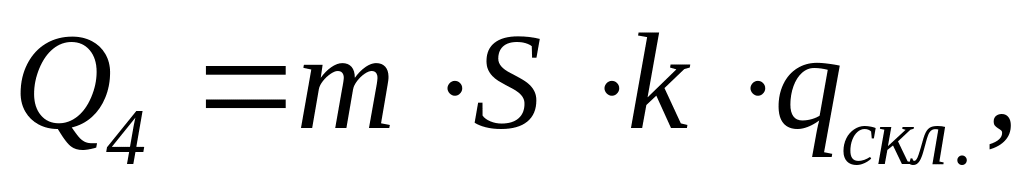 qскл. = 60 ккал./(м2×год.) – захід, схід.