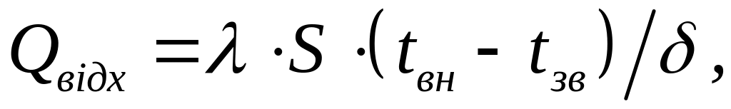 tвн. і tзовн. – відповідно, температура внутрішнього і зовнішнього (припливного) повітря, (температура припливного повітря в основному приймається на 5-10 C нижче від температури повітря в приміщенні), C.