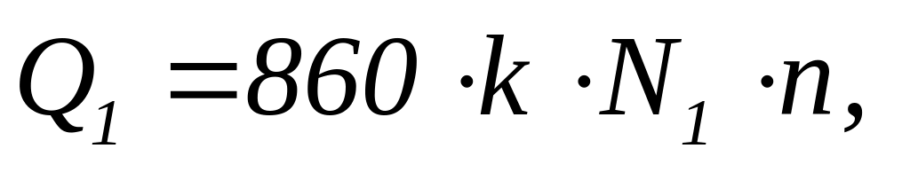 де Q1 – надходження тепла від техніки, ккал./год.: