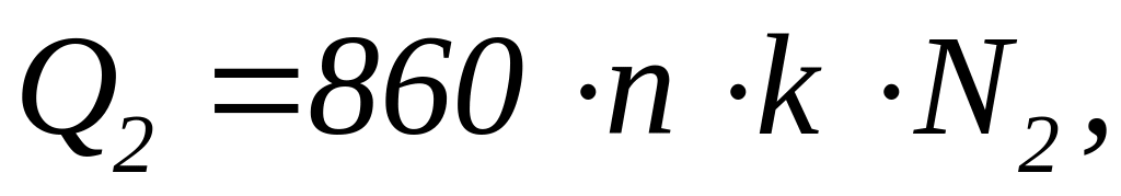 - QN – надходження тепла від інших промислових приладів, ккал./год.;