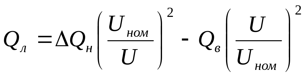 Результирующая реактивная мощность линии, обусловленная потерями реактивной мощности и зарядной мощностью, также зависит от напряжения.