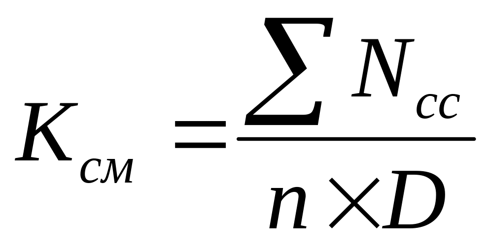3) Определим коэффициент внутрисменного использования оборудования с учетом среднего числа часов, отработанных единицей оборудования в смену: