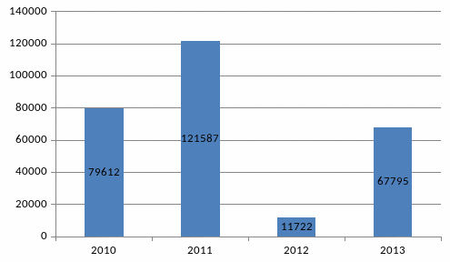 Рис.4.1. Різниця між вхідними і вихідними грошовими потоками від операційної діяльності за 2010-2013 рр.