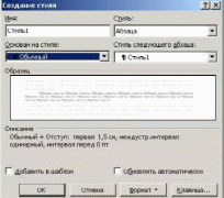 Существует иной способ создания нового стиля. Предварительно в тексте документа выполняется форматирование на уровне абзаца или группы символов. Затем для выделенного фрагмента вызывается диалоговое окно Создание стиля, где вводится новое имя стиля.