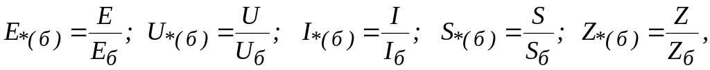 При выбранных базисных условиях относительные значения ЭДС, напряжений, токов, мощностей и сопротивлений будут: