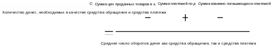 - •Количество денег для выполнения функций средства обращения Сумма товарных цен