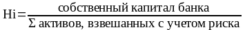 ЦБ устанавливает нормативы достаточности капитала коммерческого банка. Этот показатель определяется минимально допустимым размером УК и предельным соотношением всего капитала и суммой активов, взвешенных с учетом риска.