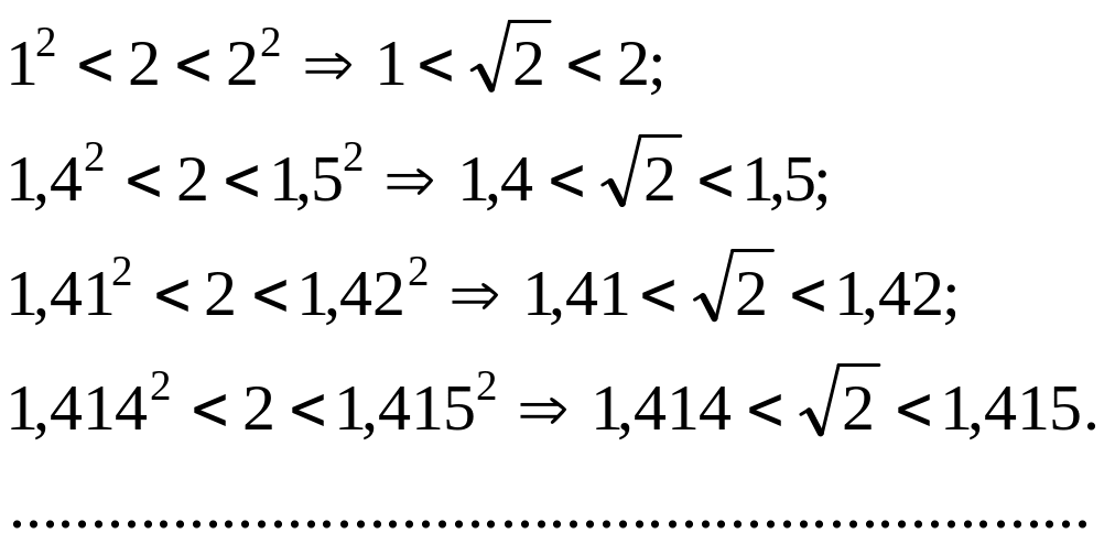1; 1,96; 1,9881; 1,999396; 1,99996164;