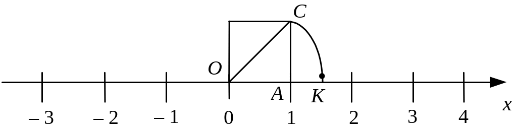 Проте ірраціональні числа утворюються не лише в результаті добування кореня. Наприклад, при порівнянні відрізка, узятого за одиницю, з будь-яким несумірним з ним відрізком дістаємо ірраціональне число. Несумірними відрізками є, скажімо, довжина будь-якого кола та його діаметр. Відношення довжини кола до діаметра дорівнює = 3,1415926… .