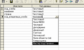 Установление связи между двумя таблицами выполняется с помощью Мастера подстановок. Эту команду можно выбрать из раскрывающегося списка в столбце «Тип данных» конструктора форм (рис. 4):