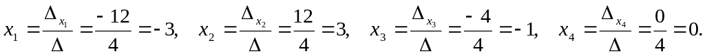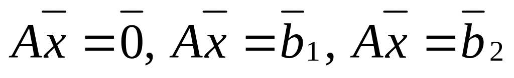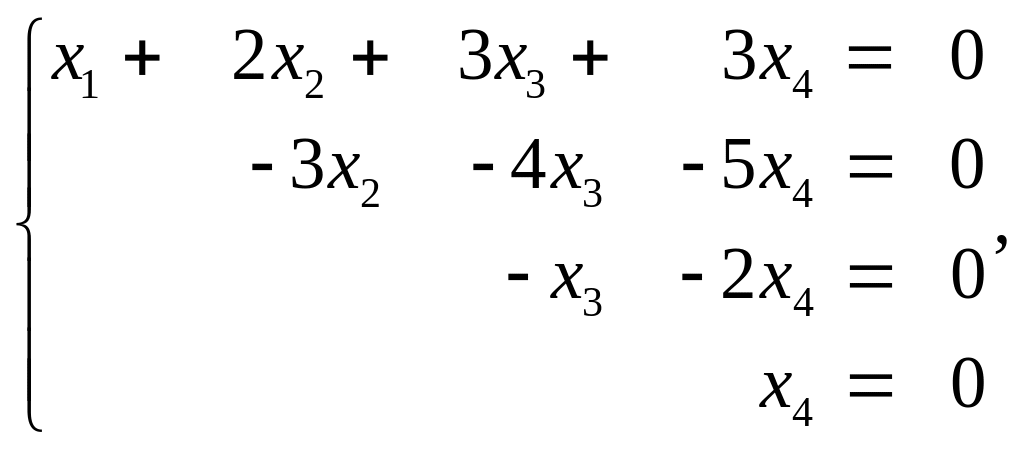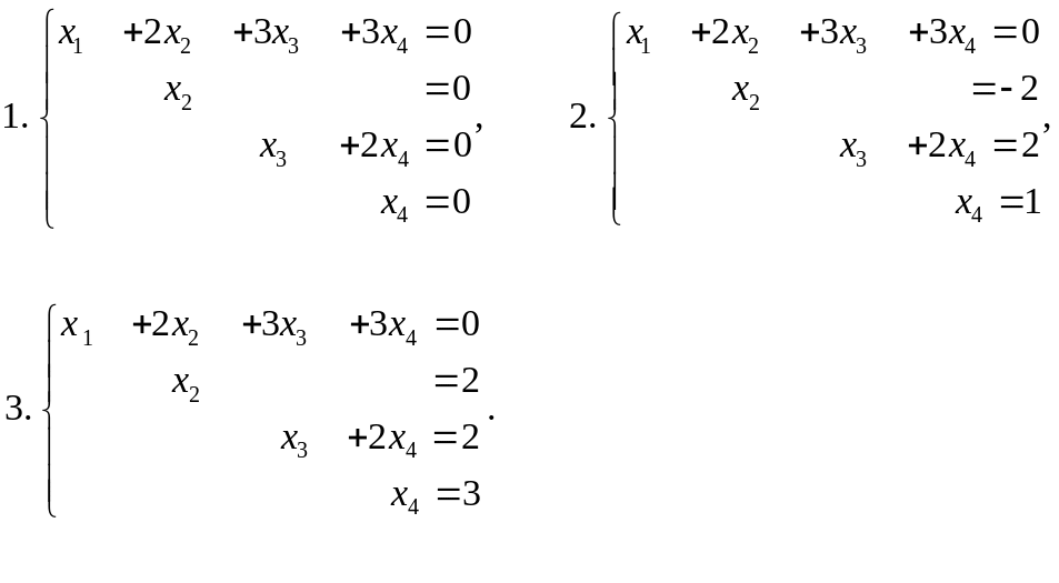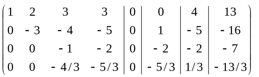 Последнюю матрицу получили, умножая третью строку на (-4/3) и складывая с четвёртой. Этой матрице соответствуют три системы: