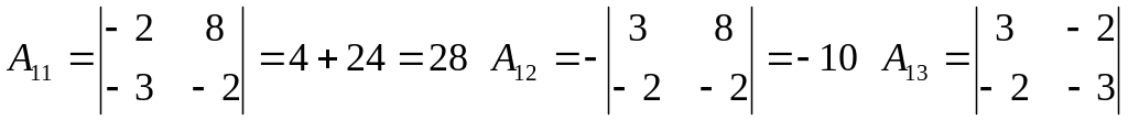 (из элементов второго столбца вычли элементы первого, а к элементам третьего столбца прибавили элементы первого, затем разложили по элементам первой строки).