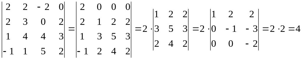 Последнюю матрицу получили, вычитая из элементов второй строки элементы четвёртой; умножая третью и четвёртую строки на (-1).