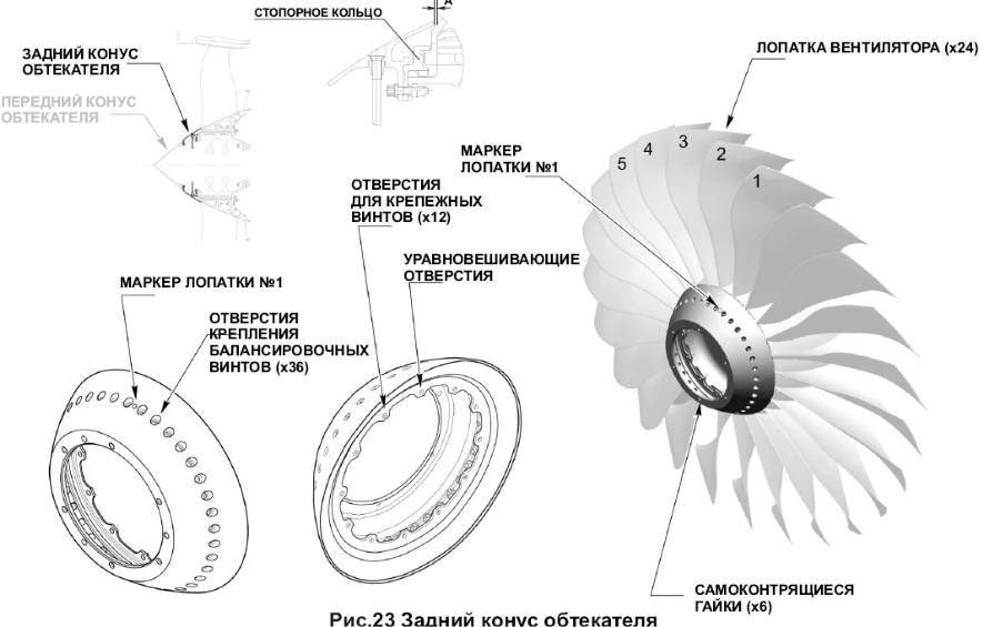 Задний конус обтекателя расположен в передней части двигателя между передним конусом и диском вентилятора. Подход к конусу осуществляется через воздухозаборник двигателя.