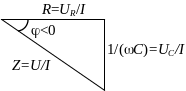 Если в векторной диаграмме, изображенной на рис. 3.2, все вектора напряжений разделить на общий множитель I, то получим треугольник сопротивлений, изображенный на рис. 3.3.