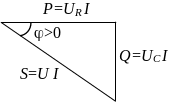 Рис. 3.10 Треугольник мощностей Если все стороны треугольника напряжений умножить на величину тока в цепи, то получиться подобный прямоугольный треугольник, все стороны которого в определенном масштабе изображают полную, активную, реактивную мощности – треугольник мощностей.