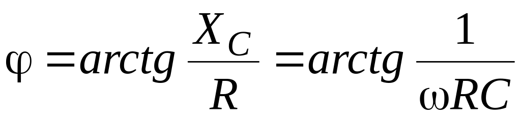 Вектор напряжения на активном сопротивлении совпадает по фазе с вектором тока, а на емкостном отстает от вектора тока на угол .