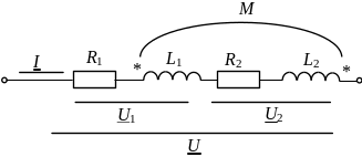 Рис. 7.1 Схема согласного включения двух индуктивно связанных катушек
