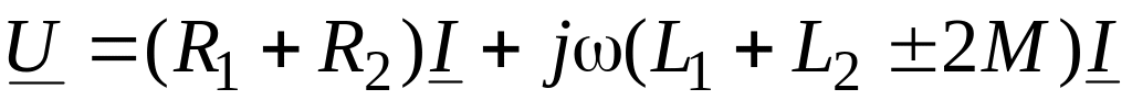 При последовательном включении индуктивно связанных катушек уравнение по второму закону Кирхгофа имеет вид