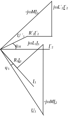 Рис. 7.7 Векторная диаграмма токов и напряжений приведенного воздушного трансформатора