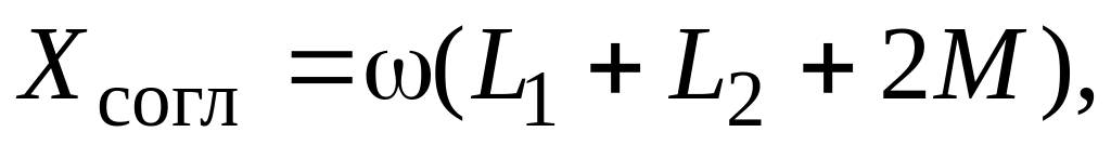 При согласном включении ЭДС само- и взаимоиндукции складываются, при встречном – вычитаются. То же относится к напряжениям, т.е. полное реактивное напряжение на катушке равно