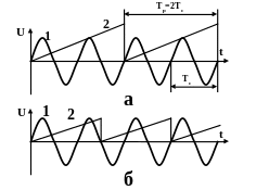 и развертки (r): а) Тр= n·Тс (n = 2); б) Тр nТс
