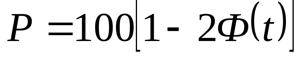 Коэффициент риска t принимается по таблицам значений функции Лапласа Ф(t) в зависимости от принятого процента риска Р. При нормальном законе распределения отклонений и равновероятном их выходе за границы поля допуска процент риска Р связан со значением функции Лапласа Ф(t) зависимостью: