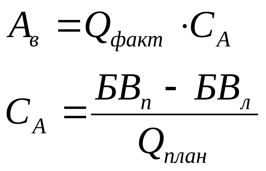 Річна сума амортизації визначається як добуток фактичного річного обсягу продукції (робіт, послуг) (Qфакт) та виробничої ставки амортизації (СА):