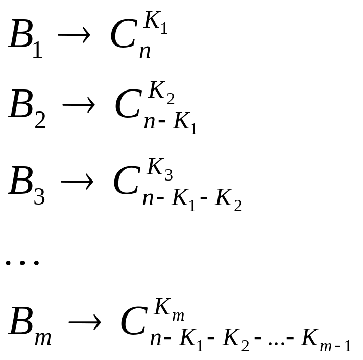 К1 + К2 + … + Кm = n