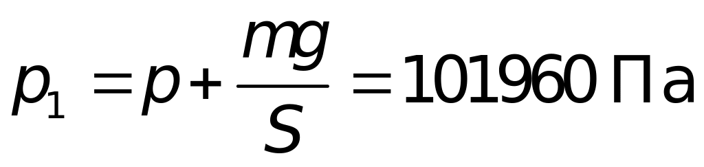 При вертикальном положении давление окружающего воздуха и поршня на пар станет
