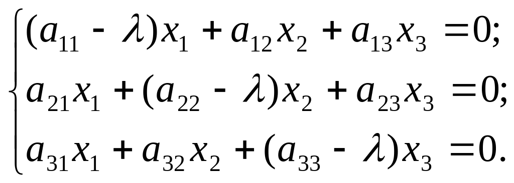 Звідси знаходимо хі. Отримана одномірна система має ненульовий розв’язок тільки тоді, коли det(A- E)=0, тобто
