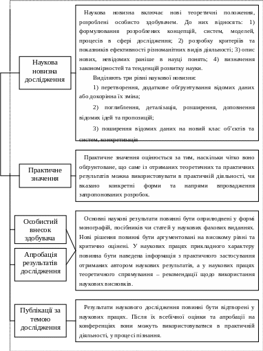 Перераховуються пункти (як правило, чотири-п’ять), які характеризують наукову новизну дослідження. Загальний обсяг - приблизно 15 рядків |