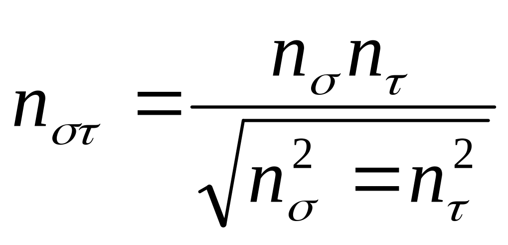 Эквивалентный запас выносливости при совместном действии изгибных и касательных напряжений определяется по формулам:
