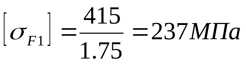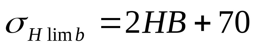 КHL- коефіцієнт довговічності , при числі циклів напруження більше базового ,що має місце при тривалій експлуатації редуктора , приймають КНL=1; коефіцієнт безпеки [SH] =1.10.