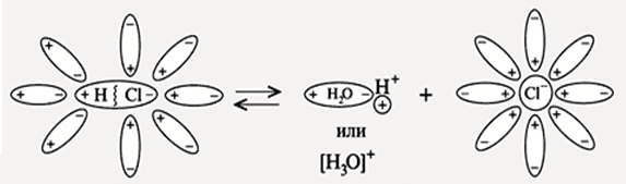 НCl + H2O ® Н+ × aq + Cl– × aq