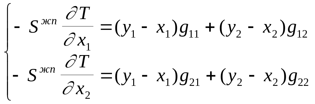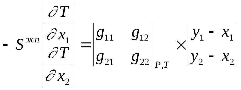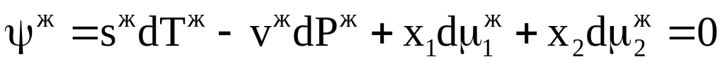 gki - вторая производная g- потенциала, величина которой в силу устойчивости фазы всегда положительна. Для удобства восприятия жидкая фаза обозначена индексом «ж», паровая – индексом «п», а их составы, соответственно, х и y.