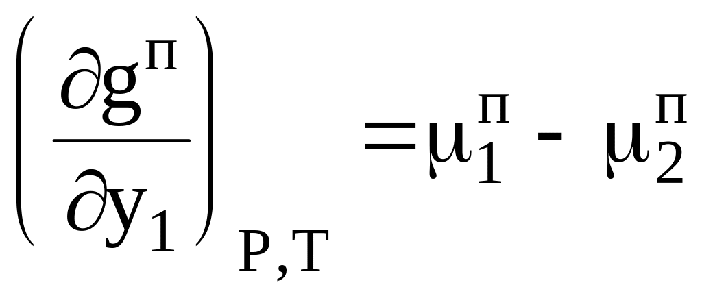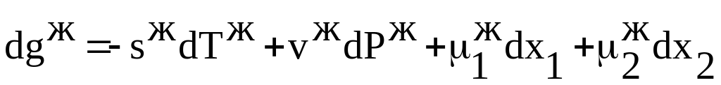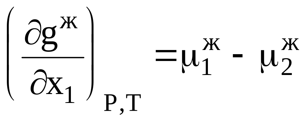 В уравнении Ван-дер-Ваальса – Сторонкина изобарно-изотермический потенциал Гиббса является характеристической функцией и позволяет определить все термодинамические свойства фазы. Частные производные от этого потенциала по числу молей одного из компонентов были названы химическими потенциалами. При переходе к концентрациям имеем, например, следующие выражения для бинарной смеси: