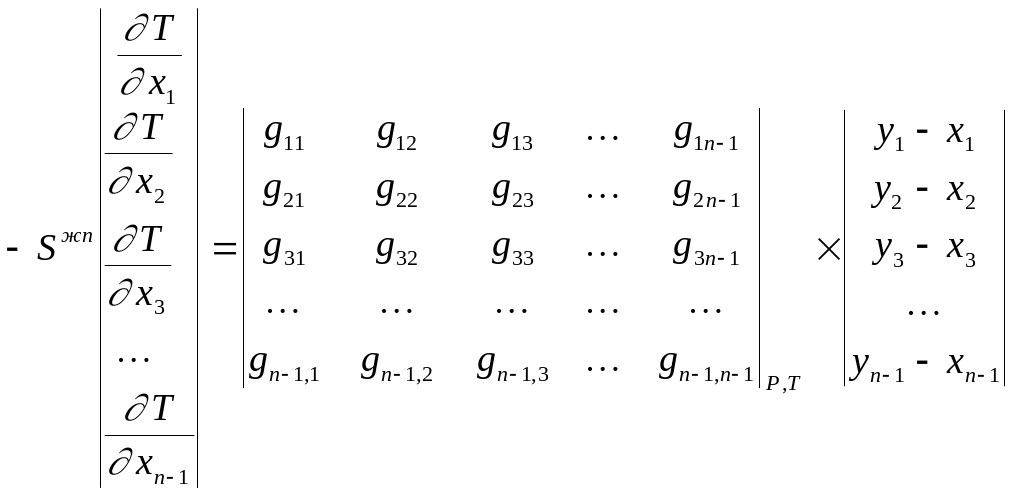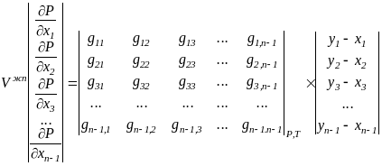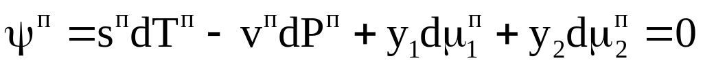 Уравнение Ван-дер-Ваальса-Сторонкина представляет разность нулевых потенциалов равновесных фаз, выраженную в координатах потенциала Гиббса, и для двухфазной (жидкость-пар) n-компонентной системы в общем виде записывается следующим образом: