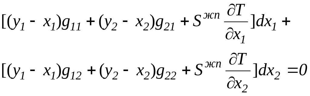 Так как dx1 и dx2 независимые переменные, то уравнение (2.6) будет соблюдаться всегда только в случае, когда каждое из выражений при dx1 и dx2 равно нулю. Следовательно, уравнение (2.6) распадается на два, образующих систему уравнений типа